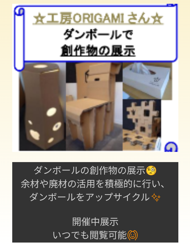 製作にご協力,ご尽力して頂いたのは、『アップサイクルパートナーシップ by hiro商店🙋』のメンバーである、『ダンボールをアップサイクルしたおもちゃや作品』🧐の【工房ORIGAMI】さんです✨→