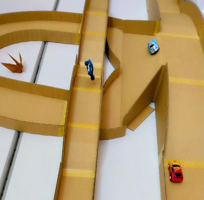 ダンボールの端材等で大スケールの『ダンボールdeレーシング🏎』、お待たせしましたが、コースの詳細を紹介します🏎