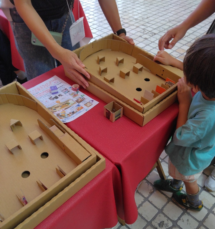 ダンボールビー玉パチンコ遊び(体験)💃では、六甲アイランドで地域活動をされておられる方にボランティアして頂き、たくさんの小学生や未就学児たちに遊んでもらいました👦👧高得点でもらえるお菓子セットを狙って、みんな真剣でしたね💪