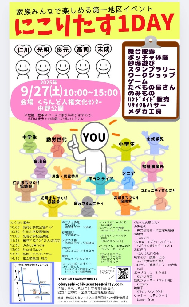 「おもしろいことする実行委員会」主催で開催される、地域イベントになります🎪今年も兵庫県宝塚市社会福祉協議会様と一緒に、微力ながら協力させて頂きます😌