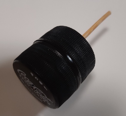 ③ ①のキャップ×2個を重ねて(内側合わせを推奨)、②の竹串等をはめる