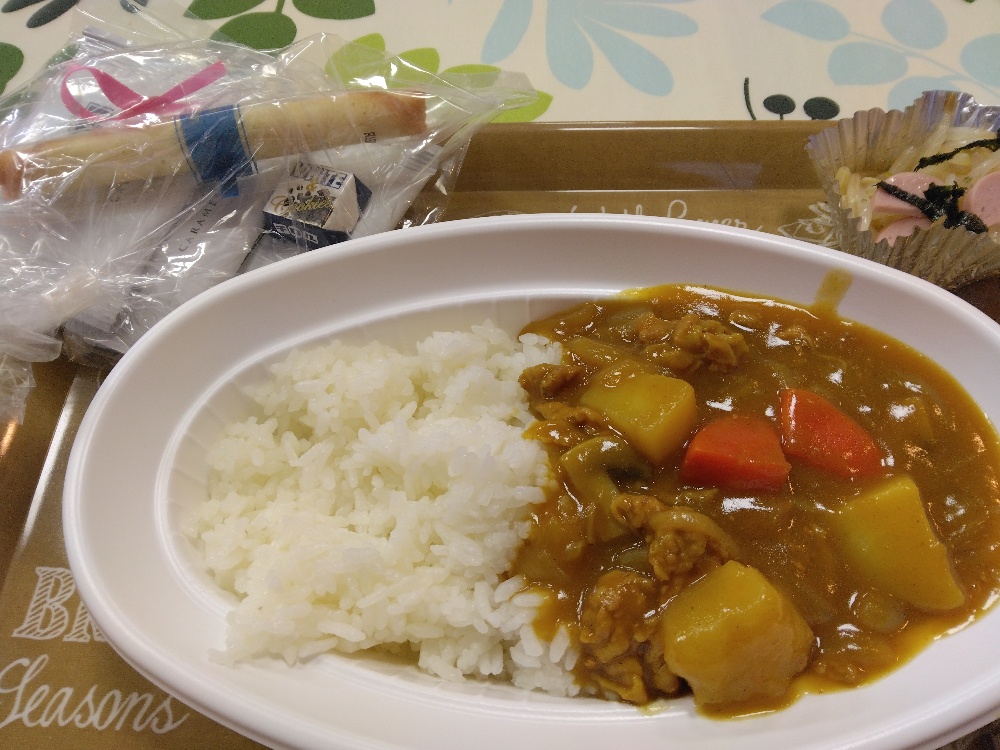 本日のメニューは、カレーライス🍛にもやしのあえものでした🍴大きめのお野菜がたっぷりで小さなお子さんでも食べ易い辛さで、美味しかったです😋お菓子のプレゼントもあり、子どもたちが喜んでました🤗