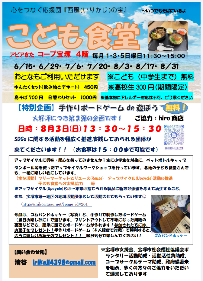 宝塚市にある【西風の宝】さんの子ども食堂に、今回は参加(3回目)させて頂きました✨→