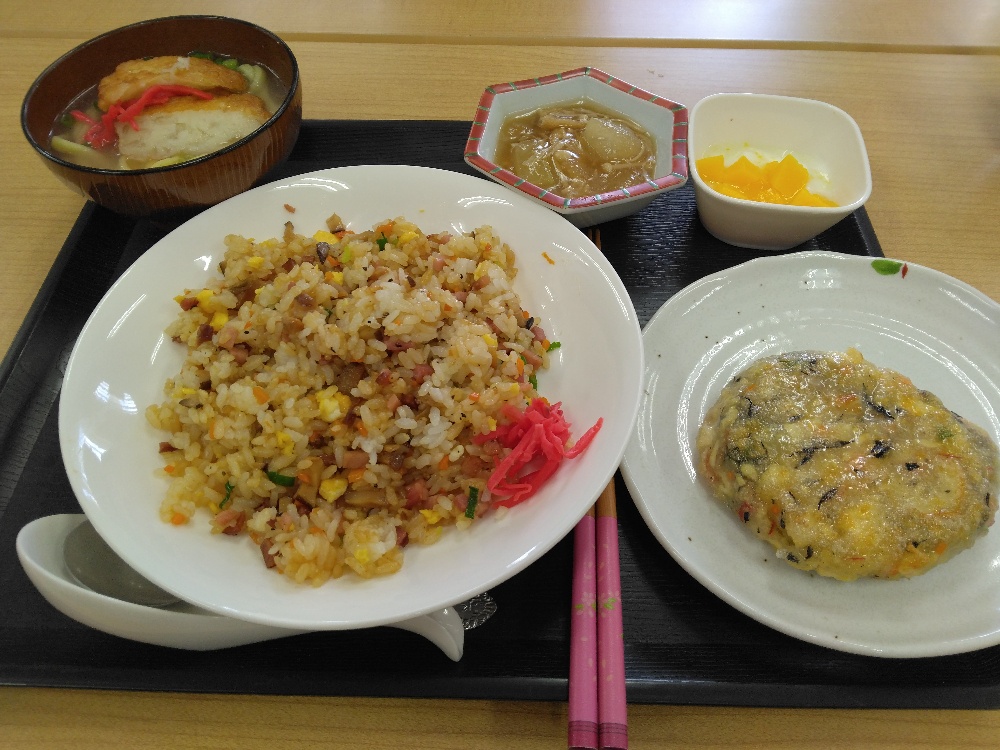 今回の昼食は、から揚げ,春雨豆板醤炒め,鮭のまぜご飯,みそ汁でした😃美味しく頂きました😋品目も多く、野菜も摂れて栄養バランスが良いですね✨みそ汁に入った玉ねぎが美味しかった、という子どももいてました👦👧