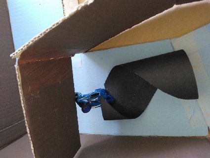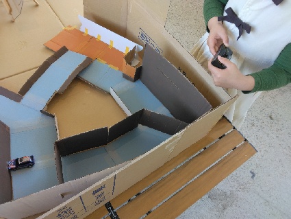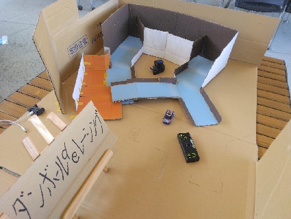 そして、『ダンボールdeレーシング🏎』❕レーシングカータイプと乗用車タイプのミニカーを準備🏎レーシングカータイプは馬力あり急旋回が出来て、乗用車タイプはアライメントを付けてやや小回りし易いようにしています。バージョンアップしました💃新たな関門、名付けて《ブラックホール》❕❔
