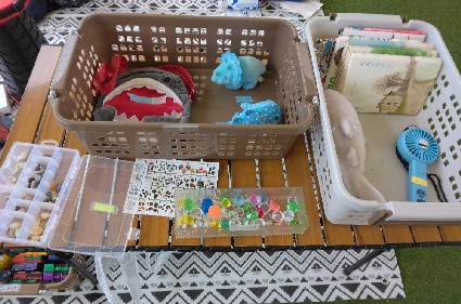道の駅いながわへの来場も含めてになりますが、400名以上の来場者数(確認出来る範囲)となりました👏午前はあいにくの雨と風でしたが、イベントに足を運んでくださって良かったです🙇♀今回も、リユース品の新規出店者さんが出品して下さいました✨着物の古布やこぎれを出品されて、反物を飾りとして欲しい方等が来られていましたね😌また、着物をバッグに趣味でアップサイクルされている方との出会いもあり、アップサイクルに関心のある方がおられて嬉しかったです🤗それに、ヘラクレスオオカブトのぬいぐるみが気に入ってくれたようで、持って帰ってくれました😃