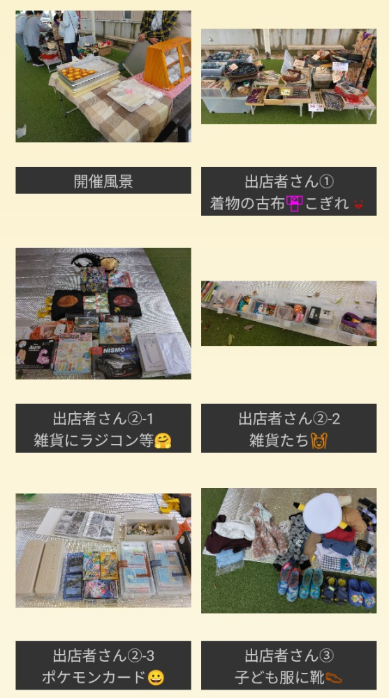 天気は雨☔のち曇り晴れ⛅開催時間中、午前は雨と風がありましたが、午後から天気が回復してくれました😃出店者のみなさま、お疲れ様でした😌出店頂きましてありがとうございました~😄