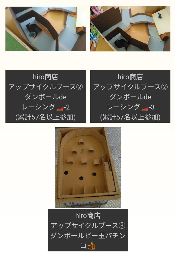 ダンボールビー玉パチンコも遊んでくれてましたね、みなさんもぜひどうぞ😃アップサイクルに興味を持ってもらえればと思っています😌