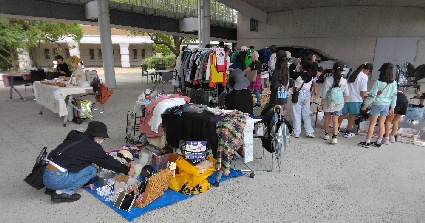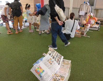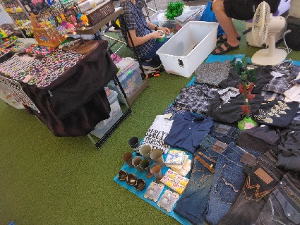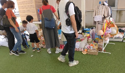 雨上がりからみんなの広場等に遊びや散歩に来られる方が見られ、フリーマーケットに目当てのリユース品があるかな、と楽しまれていました🤗未就学児と一緒に来られた方にお声掛けを頂き、アップサイクルに興味を持たれたようで、嬉しかったです😀今後も、リユースやアップサイクルで繋がっていきたいですね😌