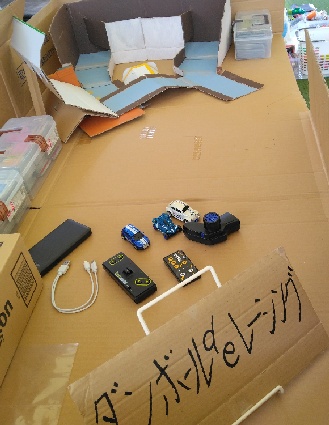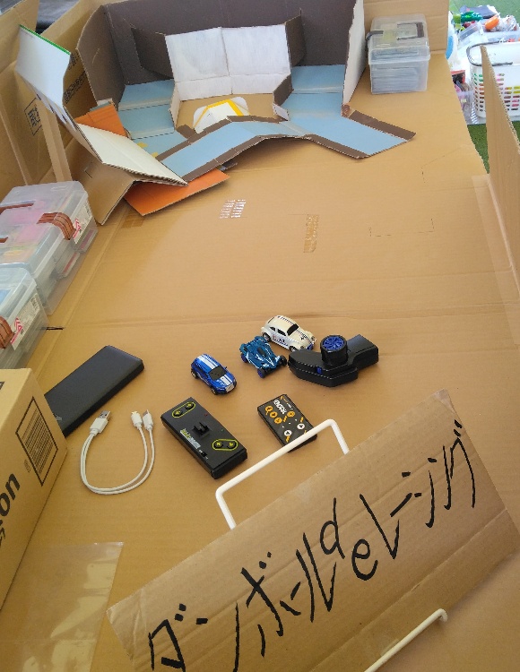 そして、『ダンボールdeレーシング🏎』❕レーシングカータイプと乗用車タイプのミニカーに加え、ライト点灯レトロカーを準備🏎レーシングカータイプは馬力あり急旋回が出来て、乗用車タイプはアライメントを付けてやや小回りし易いようにしています。レトロカーは自動運転もします🚗新コースの《エキサイティングウォール》もあり❕❔