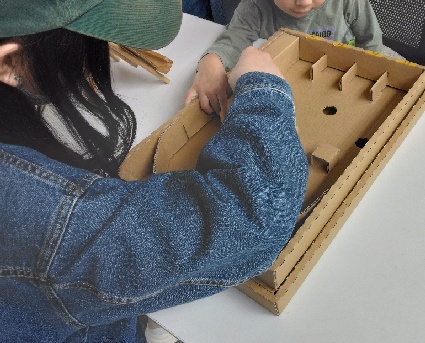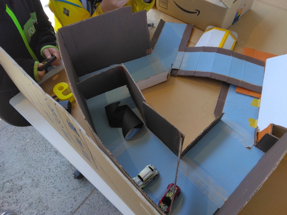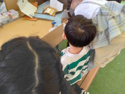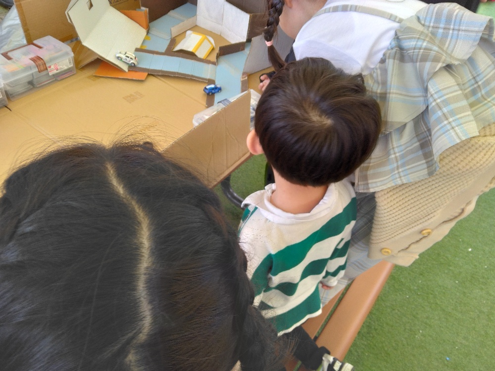 今回も、ダンボールで出来たレーシングコースで子どもたちが遊んでくれました🙌《ブラックホール》に吸い込まれる~、って言いながら楽しんでいました🤗