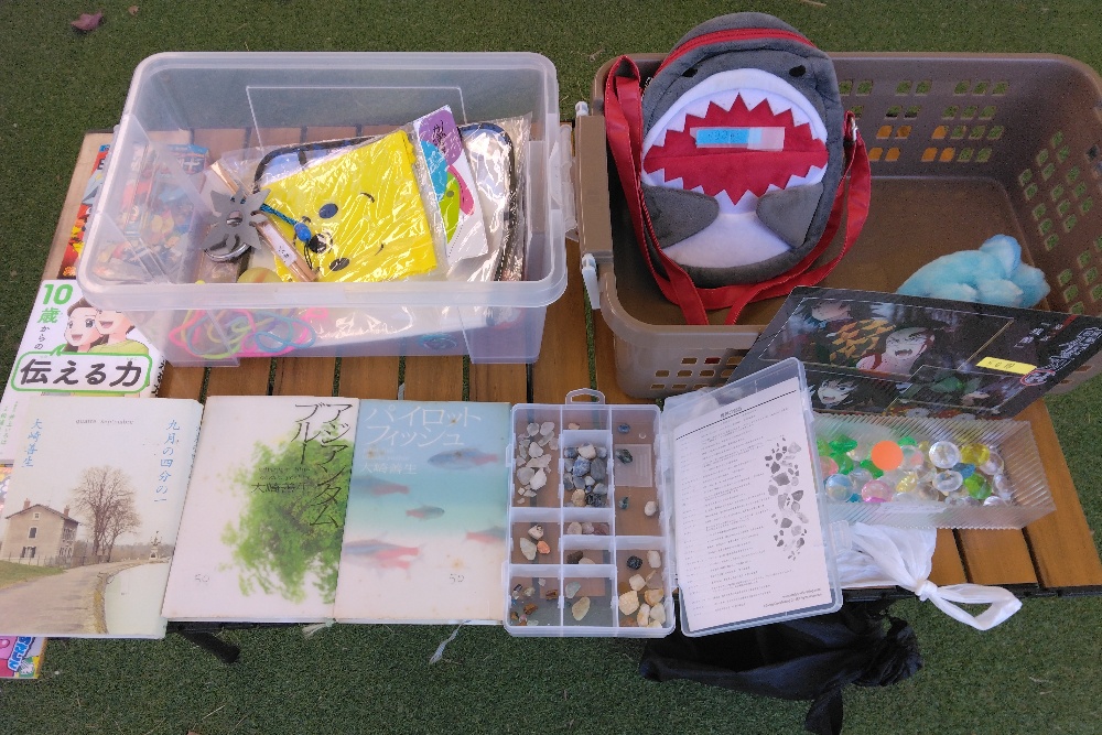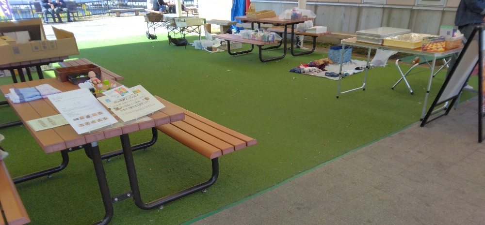 雨上がりからみんなの広場等に遊びや散歩に来られる方が見られ、フリーマーケットに目当てのリユース品があるかな、と楽しまれていました🤗未就学児と一緒に来られた方にお声掛けを頂き、アップサイクルに興味を持たれたようで、嬉しかったです😀今後も、リユースやアップサイクルで繋がっていきたいですね😌