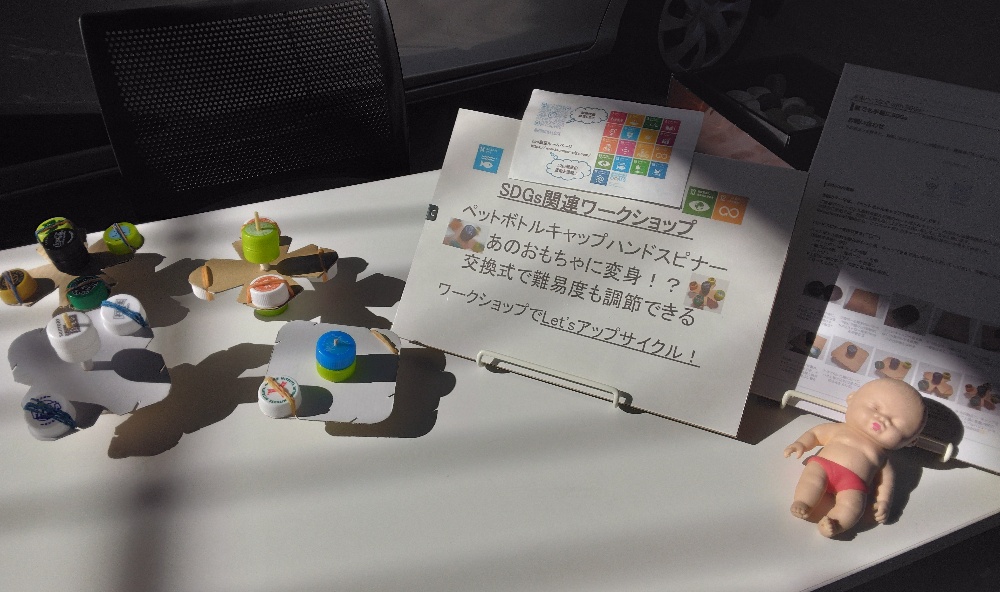 hiro商店は、アップサイクルワークショップとしてペットボトルキャップハンドスピナー作り🙋今回は、大人の方が興味を持って下さり、お話しをさせて頂きました🙇♀