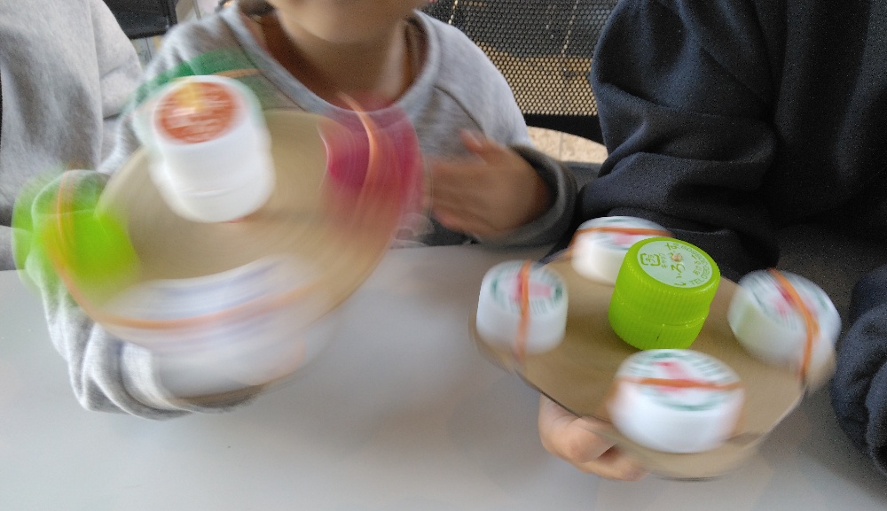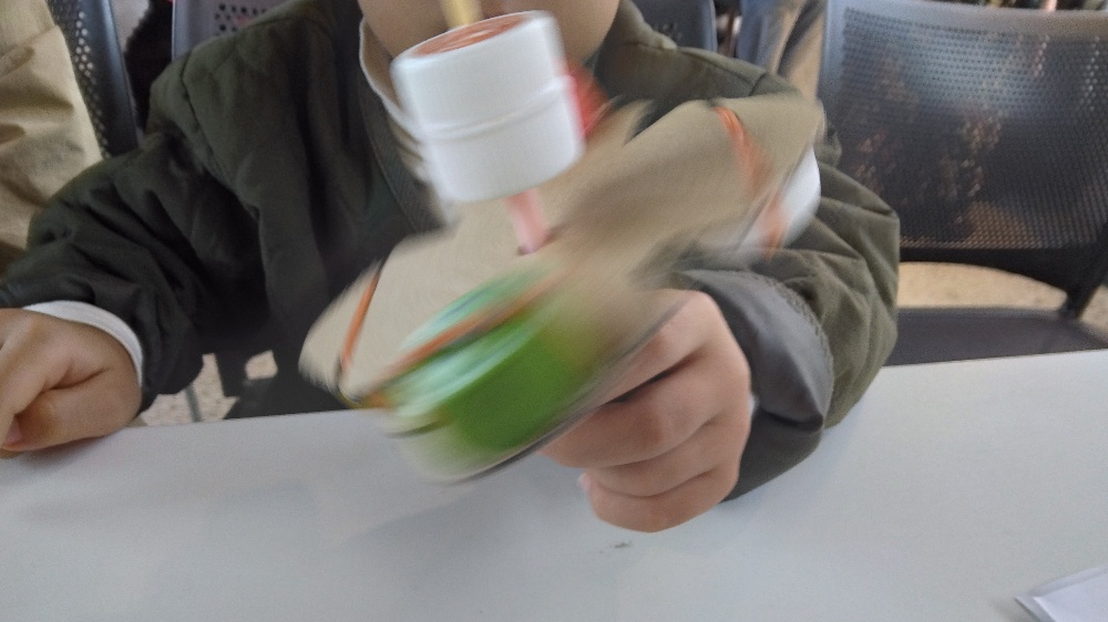 hiro商店は、アップサイクルワークショップとしてペットボトルキャップハンドスピナー作り🙋未就学児や小学生の子どもたち等が遊んでくれました~🤗