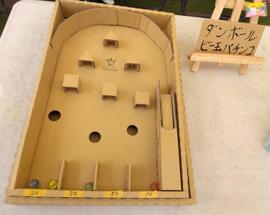 また、アップサイクルワークショップでハンドスピナー作りに加え、ダンボールビー玉パチンコもありま~す🙌