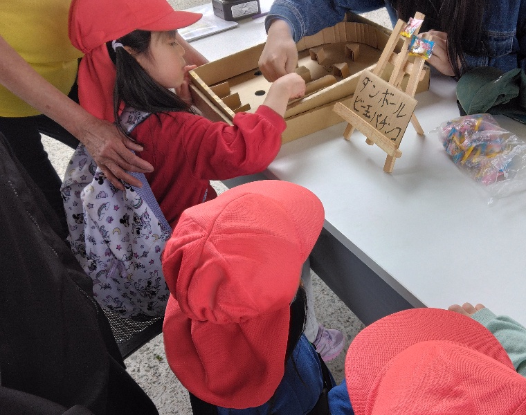 ダンボールビー玉パチンコでは、最多の29名の子どもたちが遊んでくれました~(累計46名以上)😃今回も点数付けをしたことで、兄弟やお友達同士で何点取れるか対戦をしてくれていました💪
