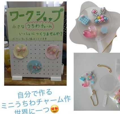 そして今回は、hiro商店に協力する形で小学6年生のボランティアさんが、小さなうちわチャームを作るワークショップをしてくれました🙇♀可愛らしいアクセサリーが出来て、子どもたちが喜んでいました😃