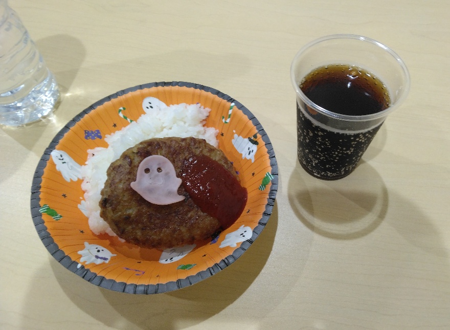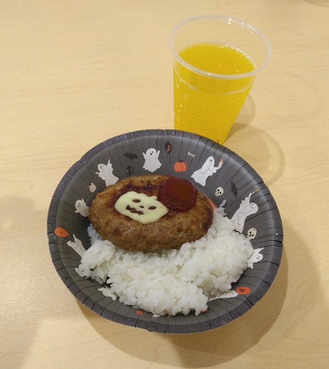 今回は、ハンバーグとご飯🍚にジュース🍹付き😋ハロウィンということで、ハロウィンバージョンにアレンジされていました🎃