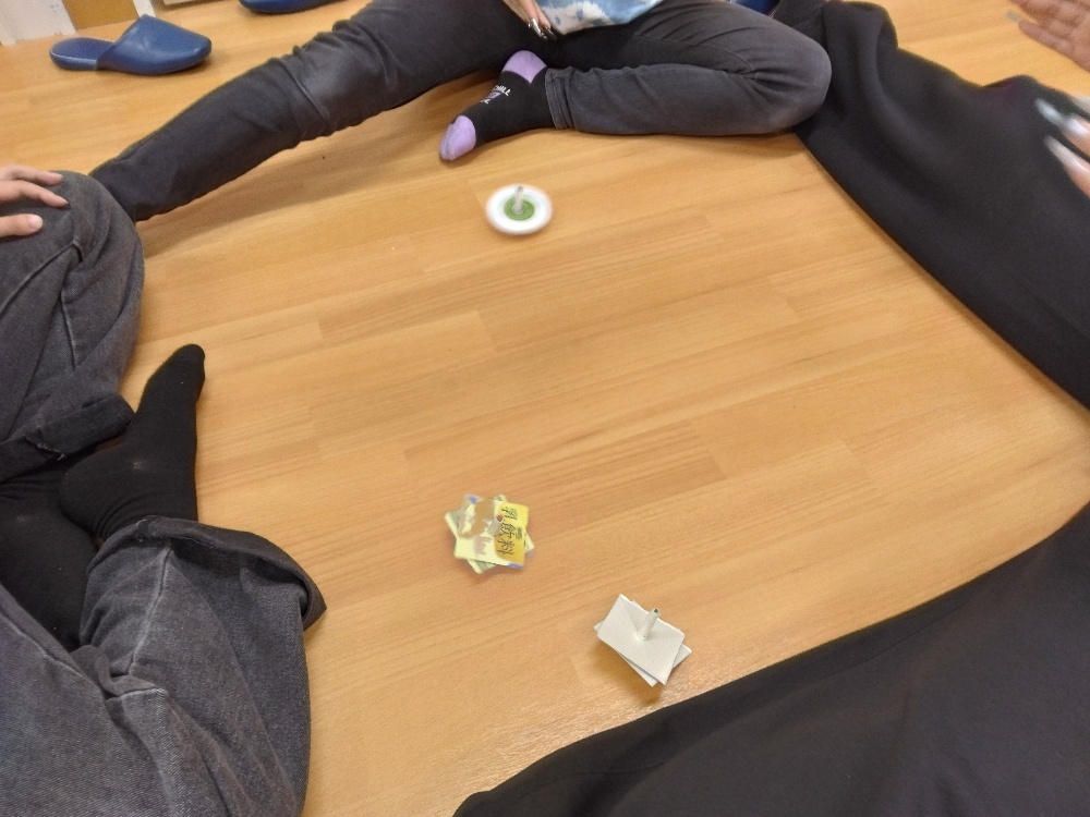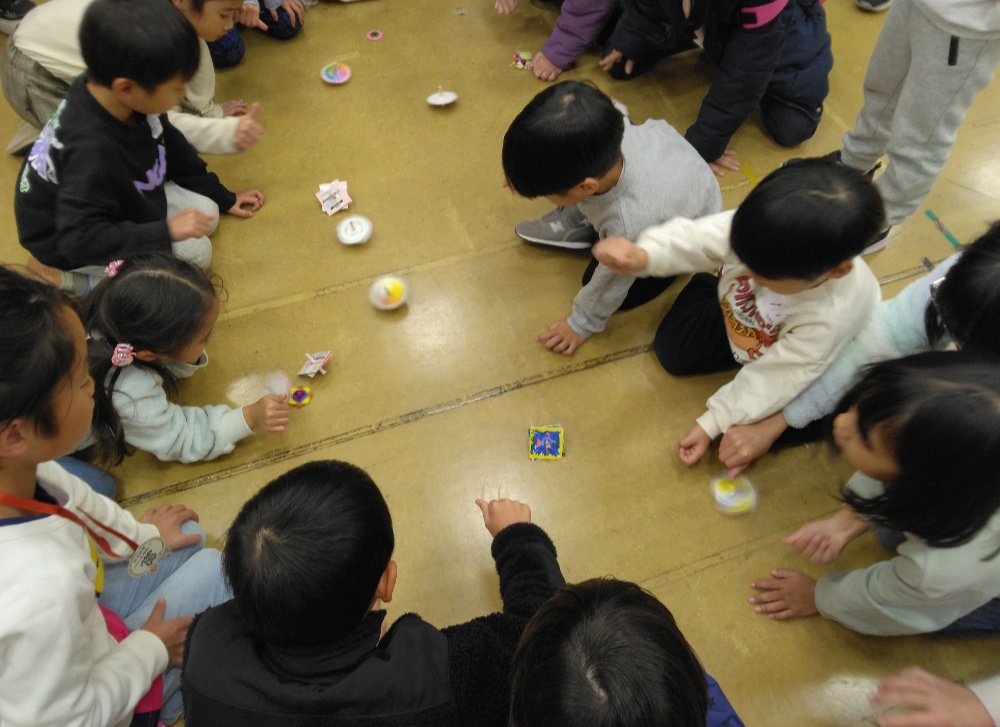 製作してお食事を済ませた後、終わりの会でお友達とコマ回し対決❕全員揃って誰が一番長く回すことが出来るかどうかを競いました💪