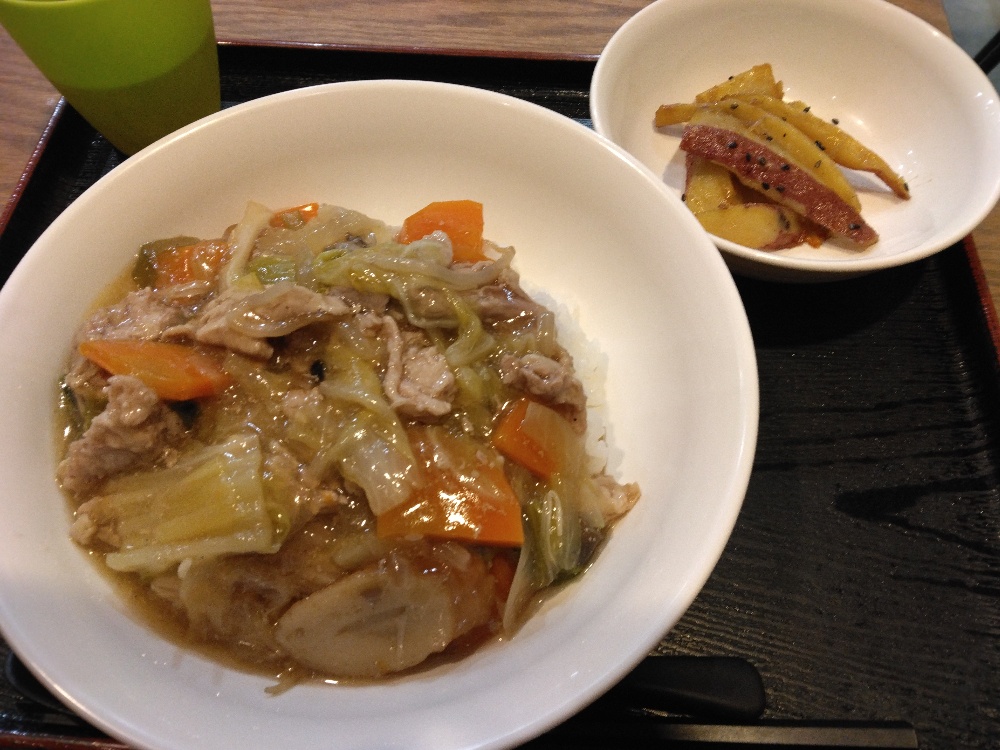 今回の夕食は、中華丼🍜とデザートに大学いも🍠とみかん🍊どれも美味しく頂き、お腹いっぱいになりました😋