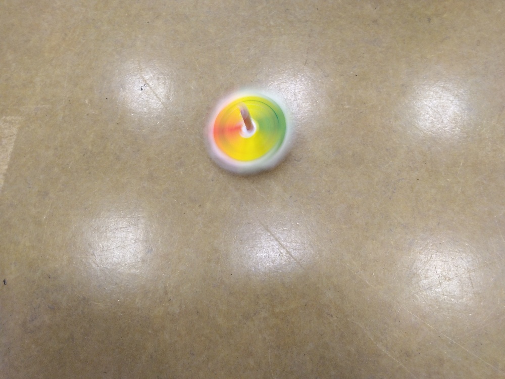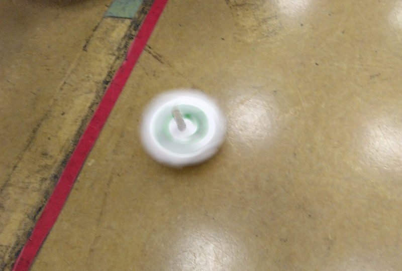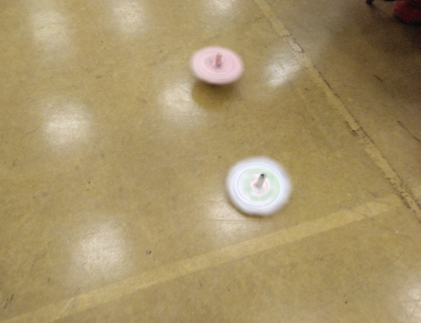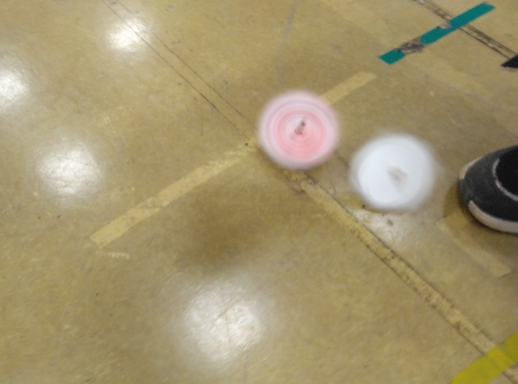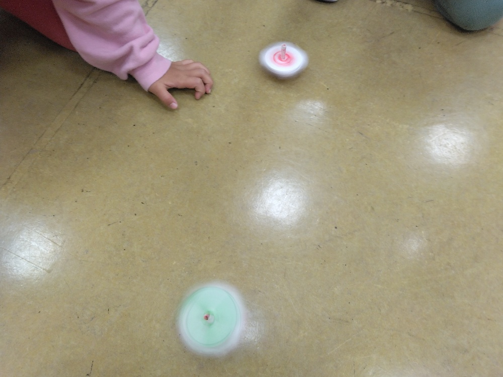 製作したらお友達とコマ回し対決❕各々楽しんだ後は、全員揃って誰が一番長く回すことが出来るかどうかを競いました💪